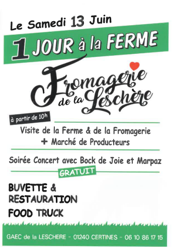 La "Fromagerie de la Leschère" vous donne rdv le samedi 13 juin à partir de 10h pour une journée découverte de la ferme et de la fromagerie et avec des animations !