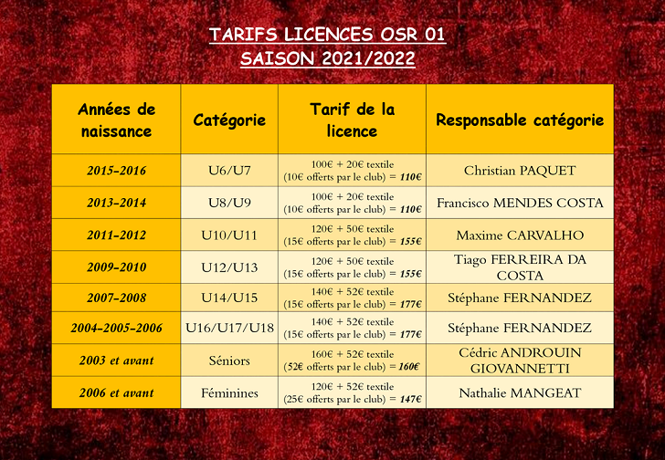 L'OSR 01 est un club de football amateur composé d'environ 330 licenciés avec une quarantaine de dirigeant(e)s qui ont pour finalité de former des citoyens sportifs.
